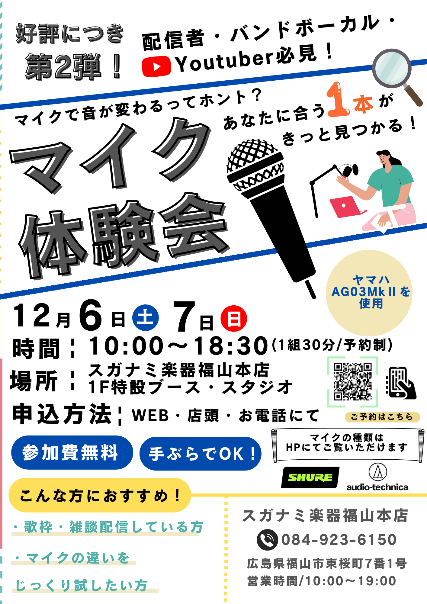場所:スガナミ楽器福山本店1F特設ブース・スタジオ