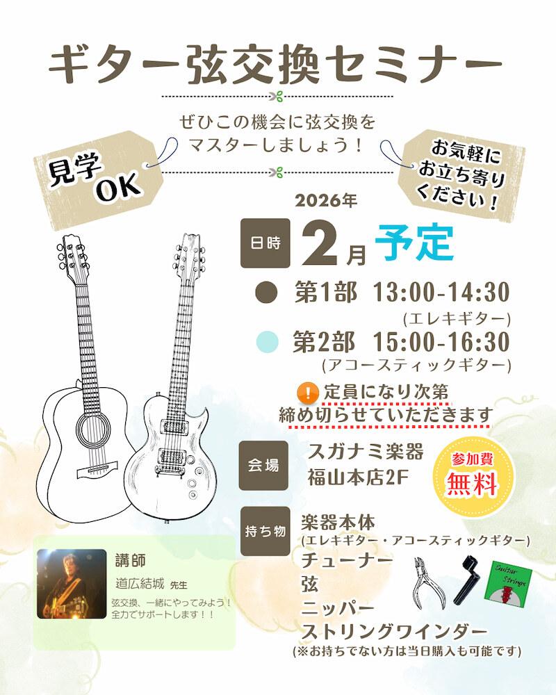 申し込み方法:電話 (スガナミ楽器福山本店 ☏084-923-6150)