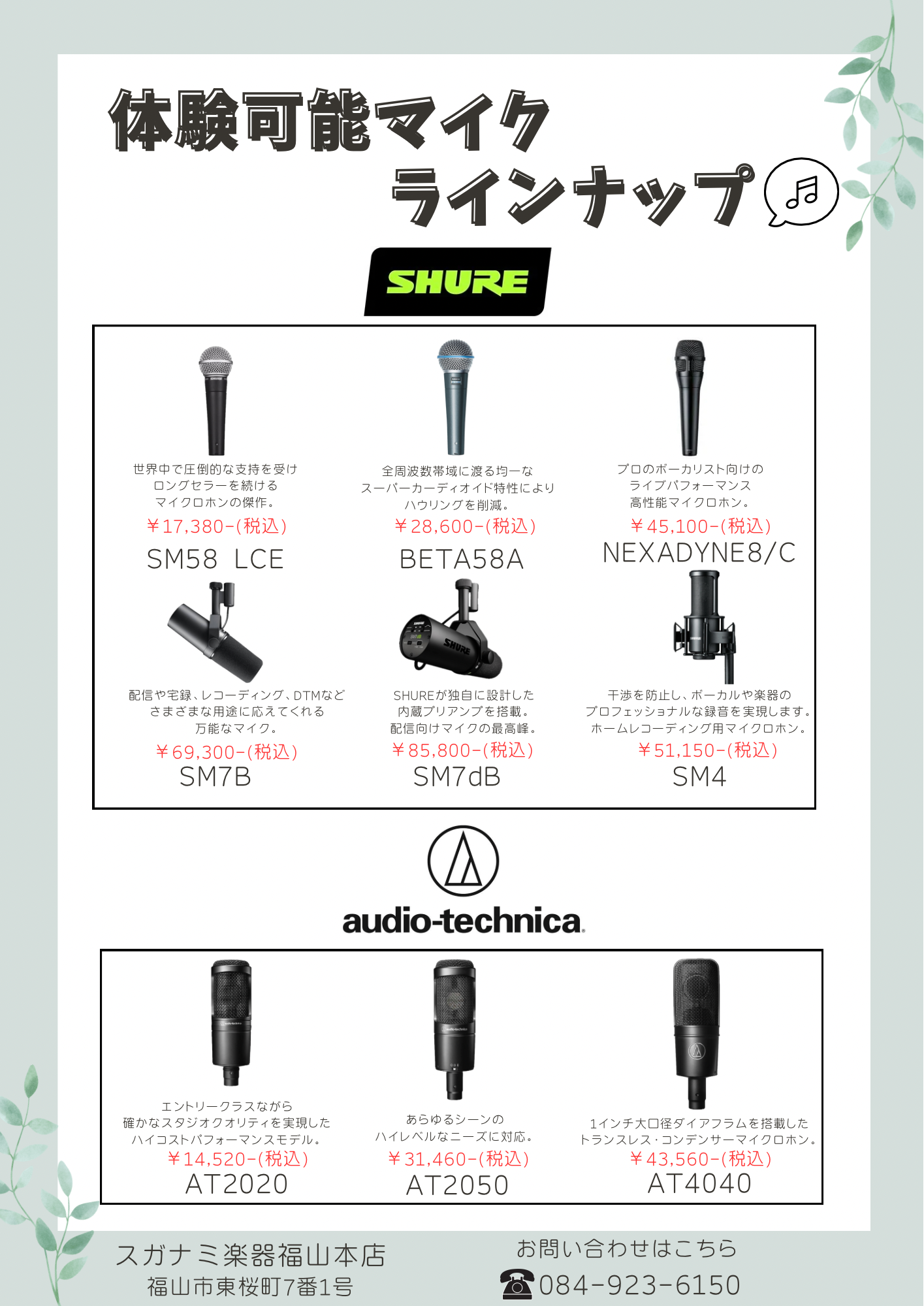 体験可能マイクラインナップ発表♪