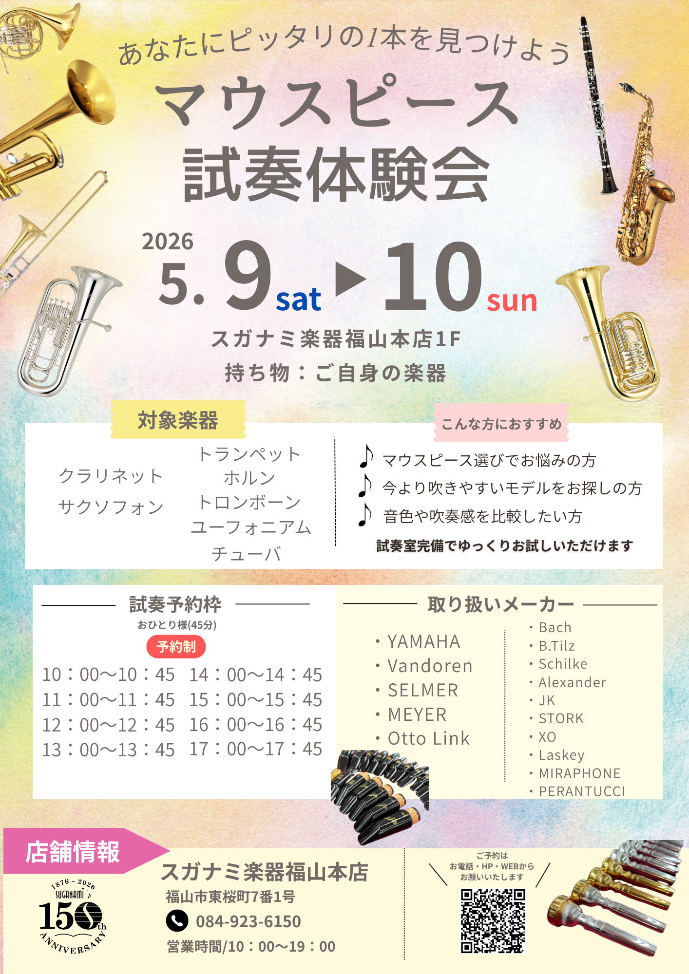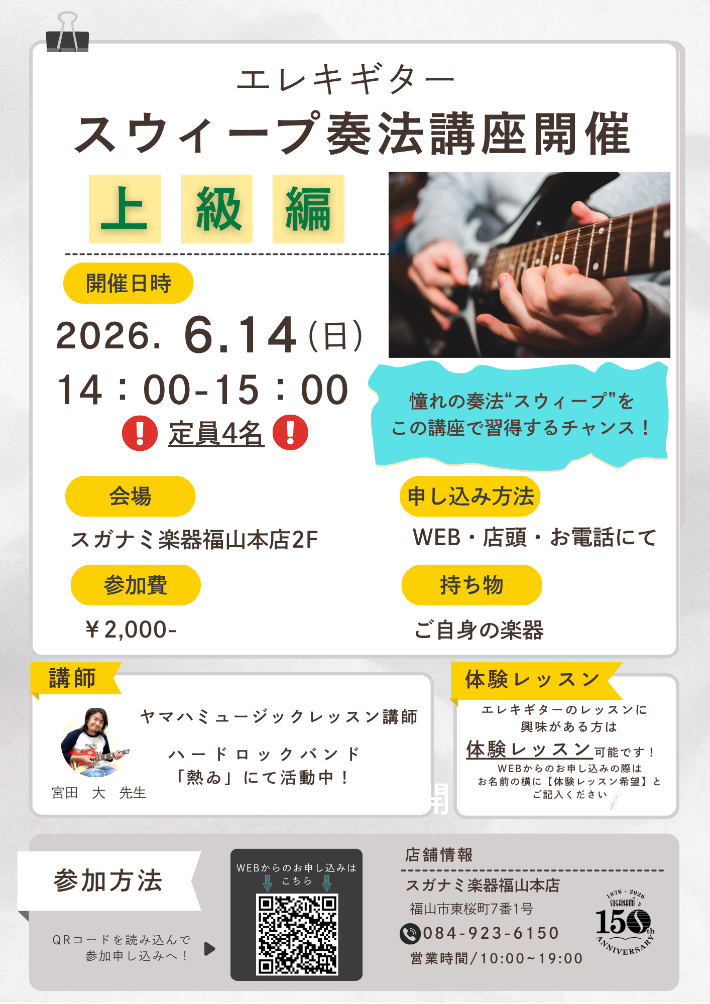 スガナミ楽器福山本店Aスタジオにて開催決定!!
